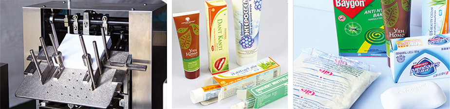 適用于軟膏類物品(牙膏、藥膏)及軟包裝類物品的自動裝盒。